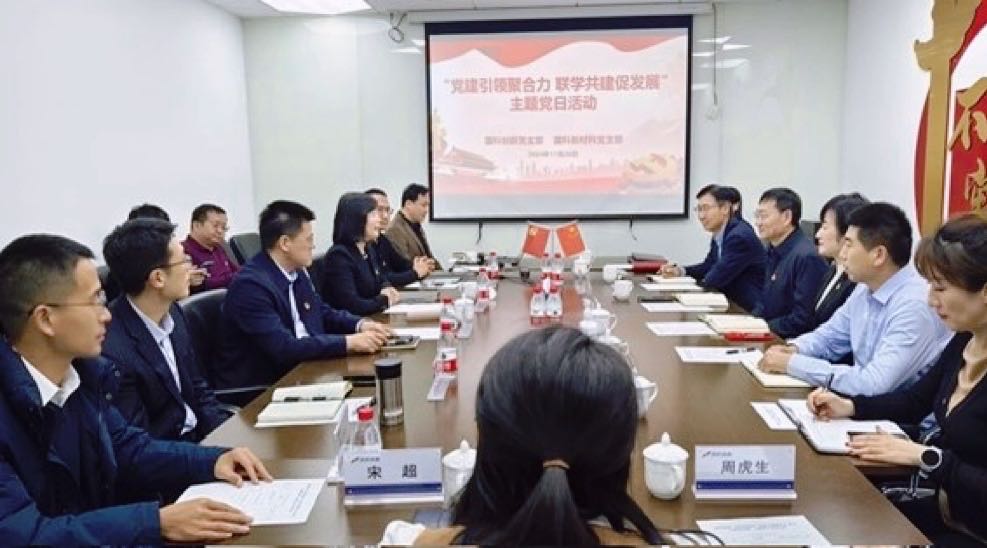 2024年11月26日下午,为深入学习贯彻党的二十届三中全会精神,促进党建工作与业务深度融合,国科新材料党支部与国科创新党支部以“党建引领聚合力 联学共建促发展”为主题,开展联学共建主题党日活动。国科控股党委常委、副总经理兼国科创新党支部书记、董事长杨红梅主持会议,国科新材料党支部书记、总经理付兴国,国科创新党支部副书记、总经理蒋磊,以及双方党员干部参加会议。